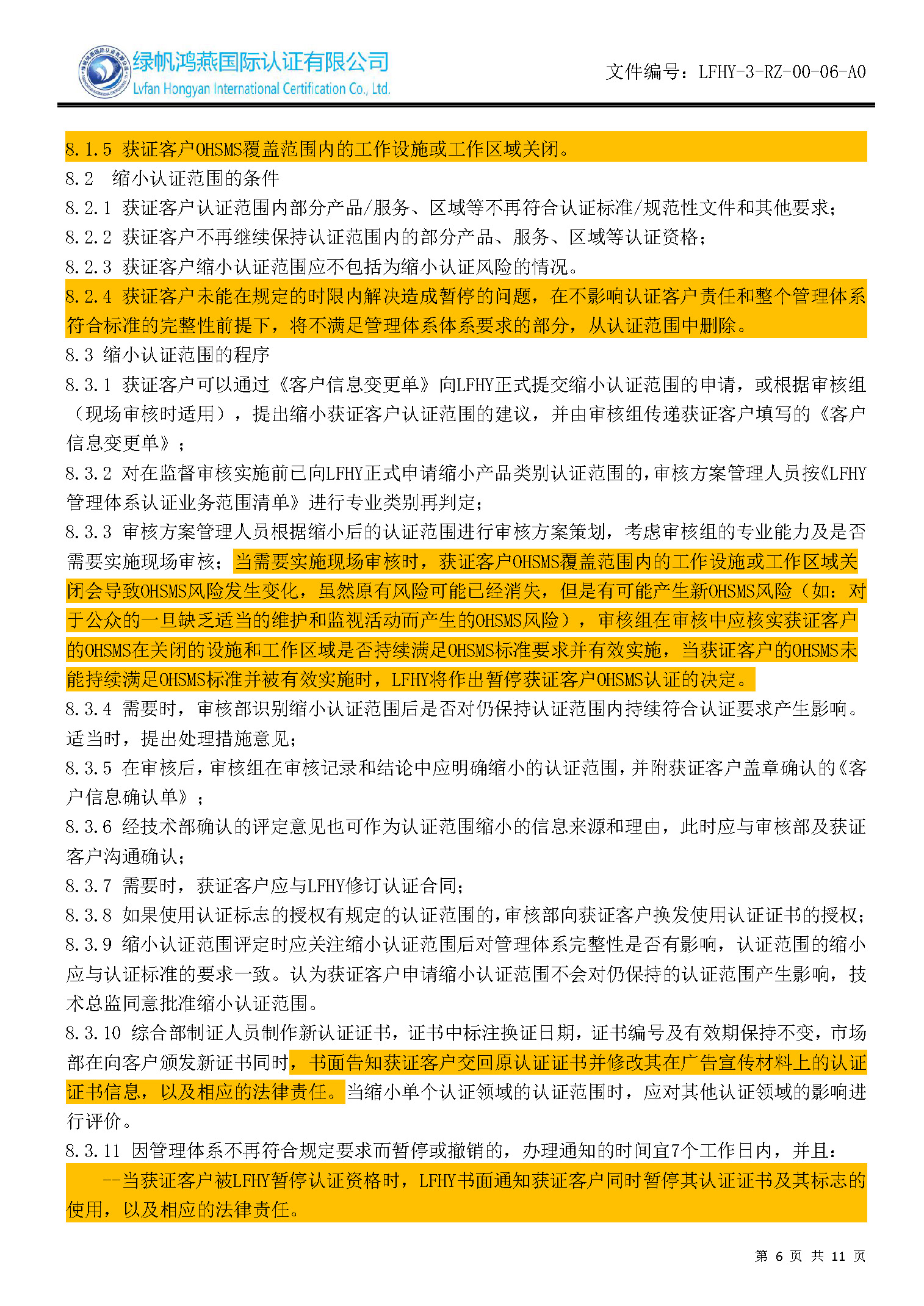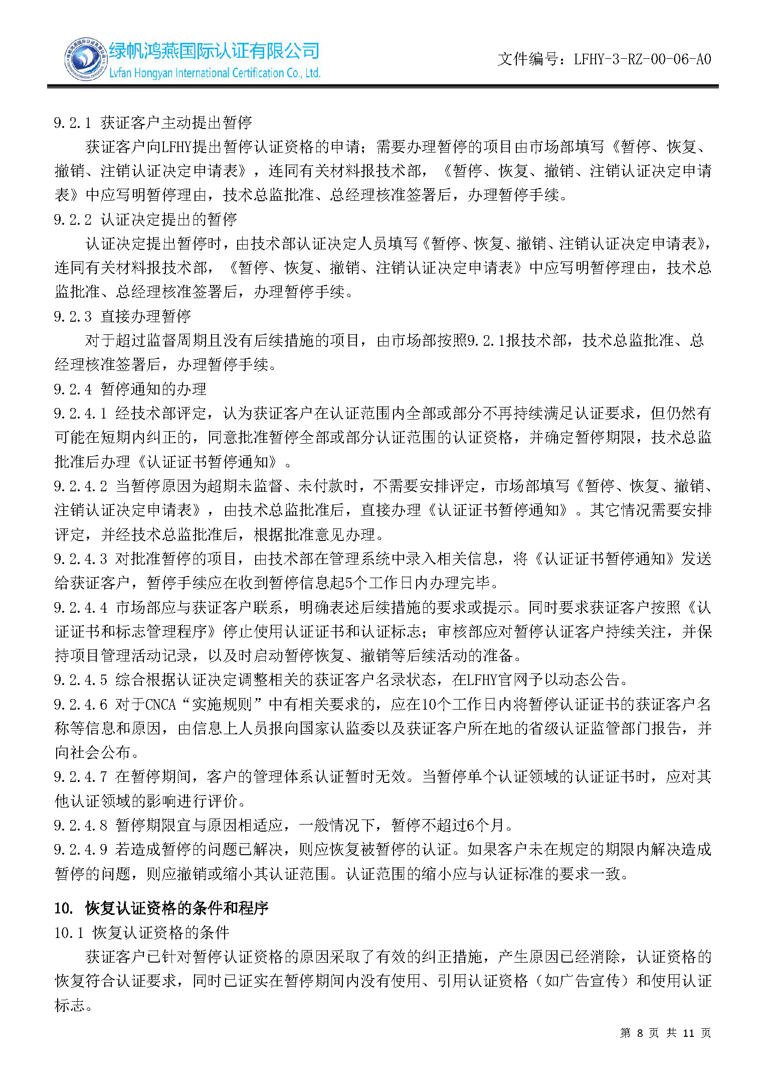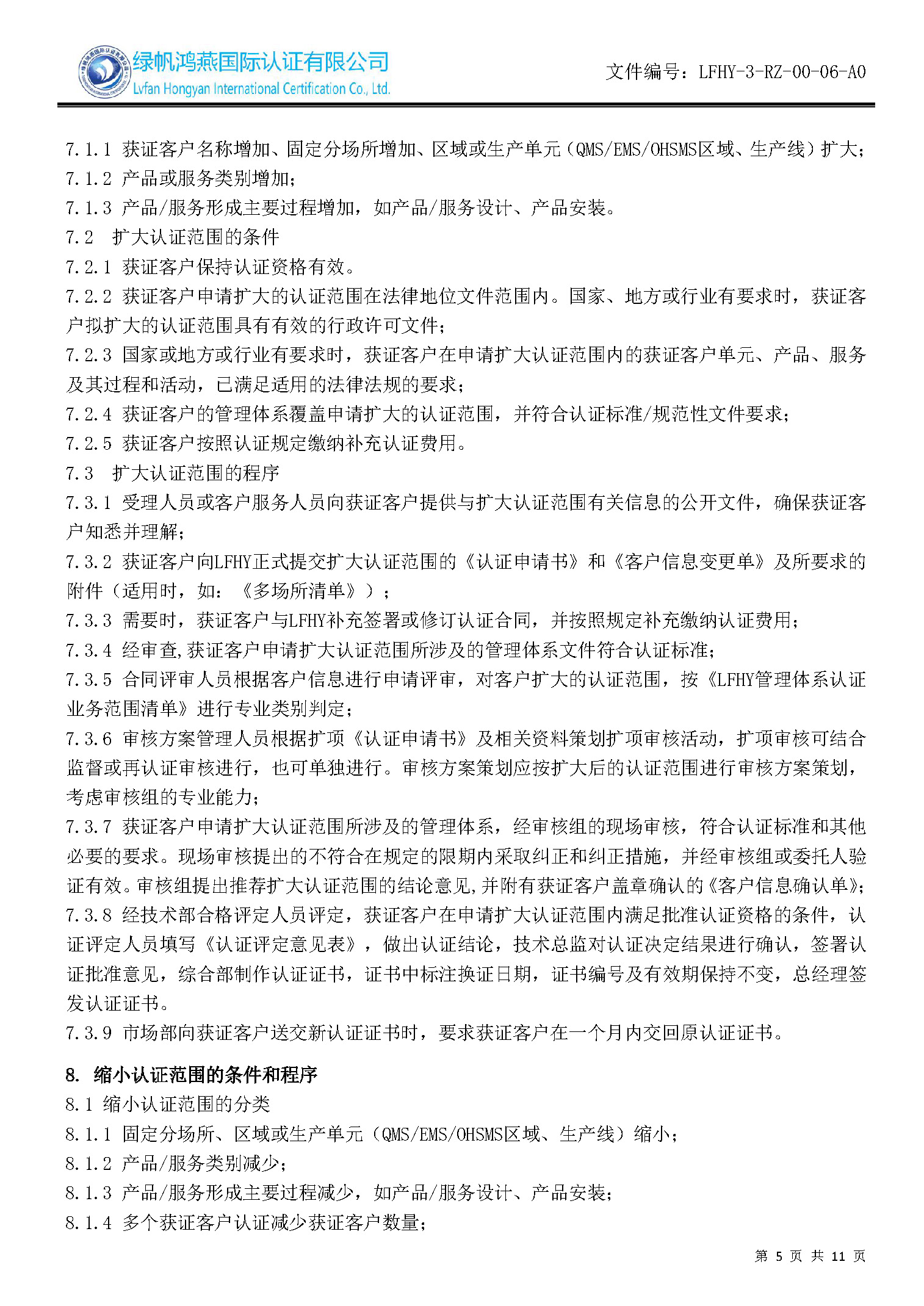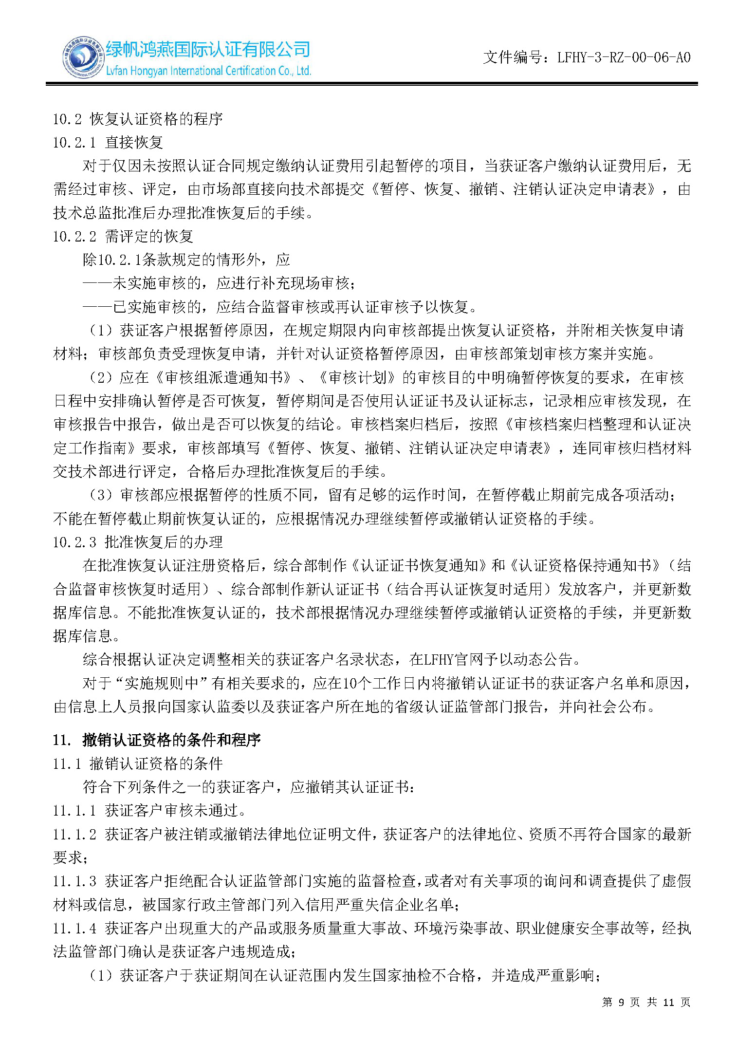 LFHY管理體系認(rèn)證的批準(zhǔn)、拒絕、保持、擴(kuò)大、縮小、暫停、恢復(fù)和撤銷(xiāo)的條件和管理規(guī)范
